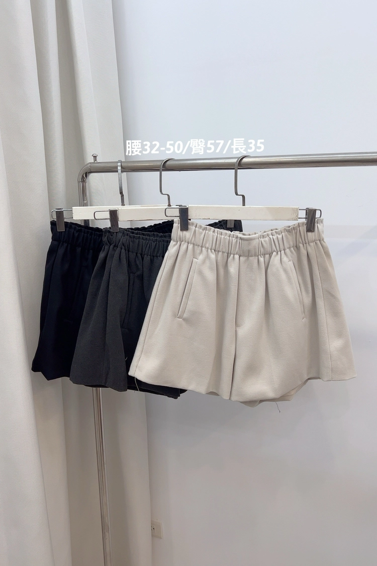 杏,深灰,黑前側口袋毛呢短褲