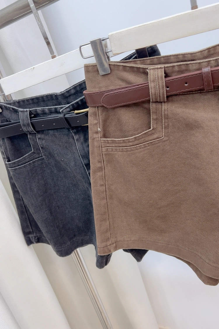 咖,黑附皮帶水洗牛仔短褲(偏小S,M,L