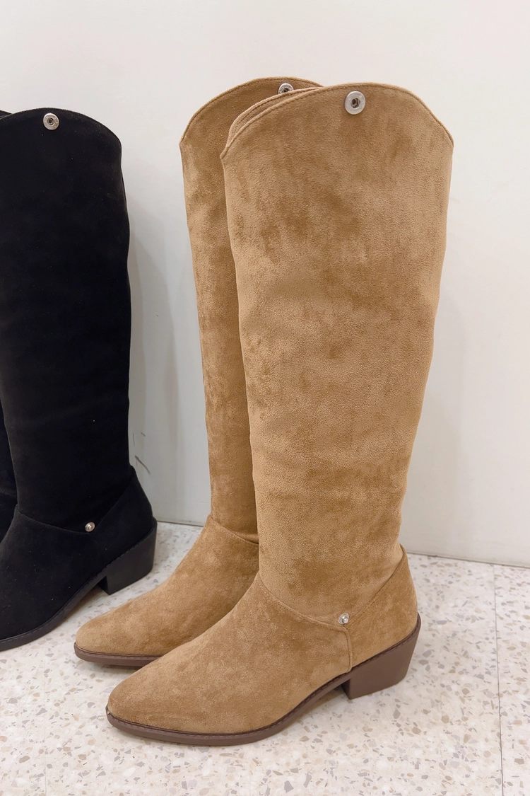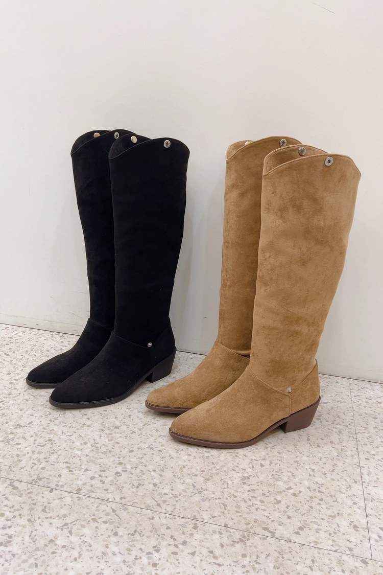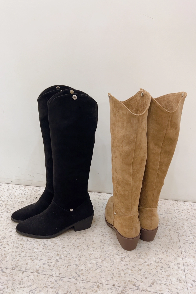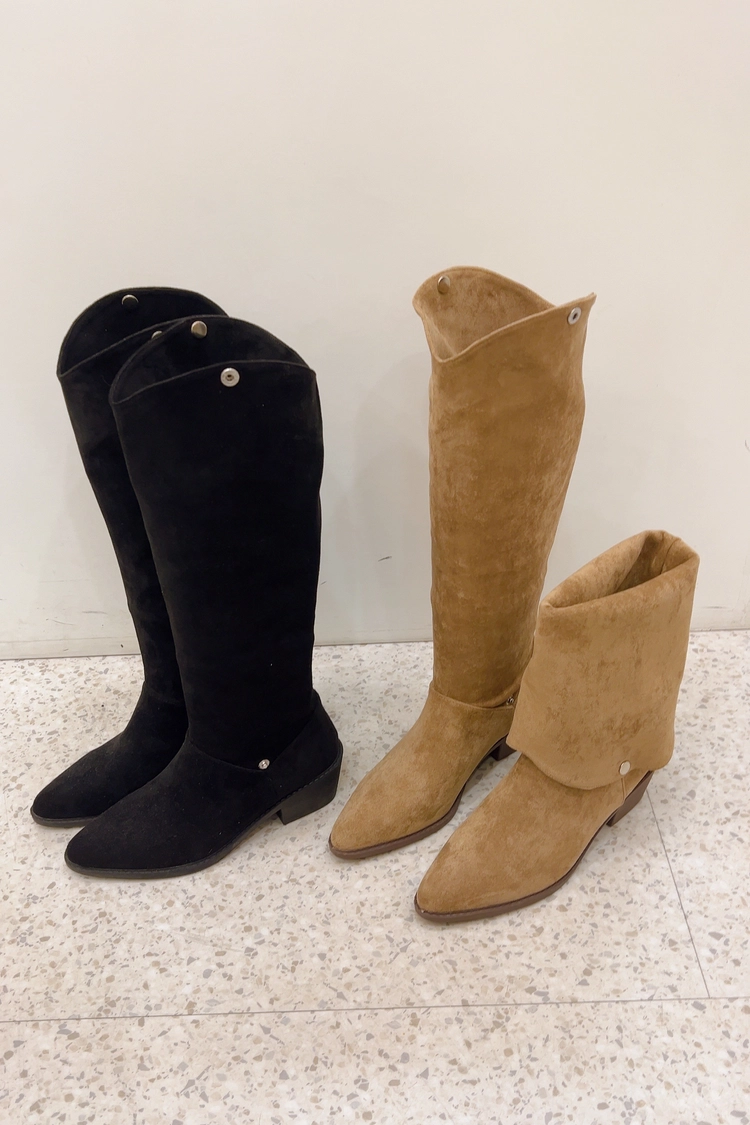 8R9 黑,卡可反折麂皮尖頭長靴35-39