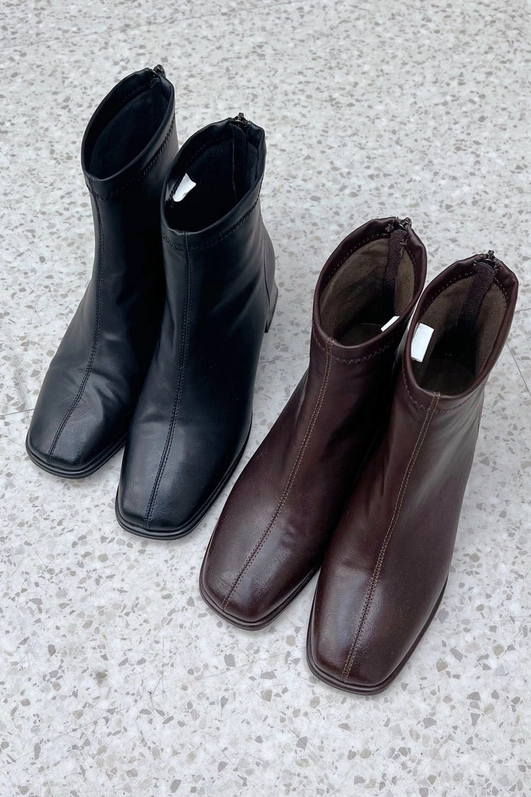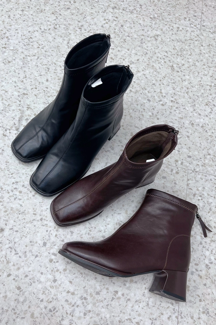 8610A 咖,黑方頭粗跟短靴35-40