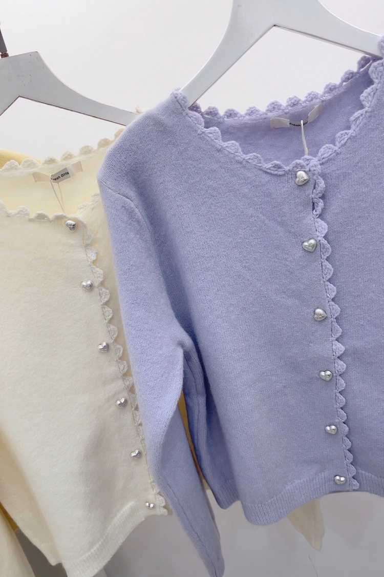 銀愛心釦針織外