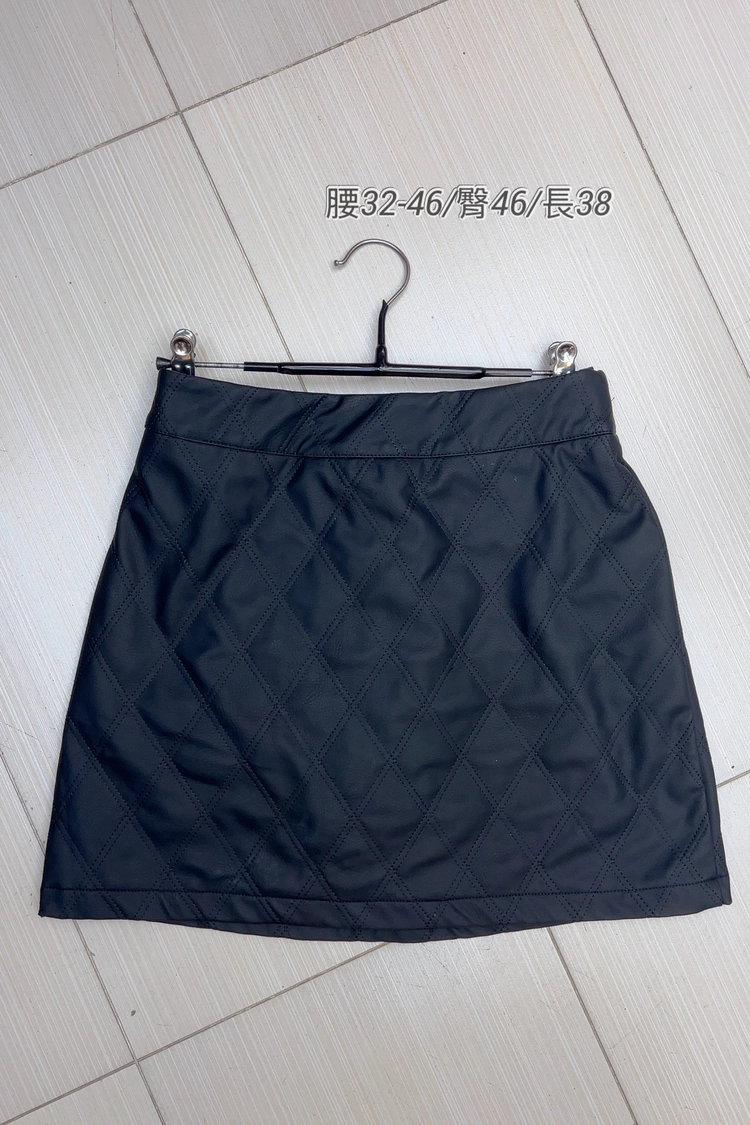 黑菱格皮短裙-47228