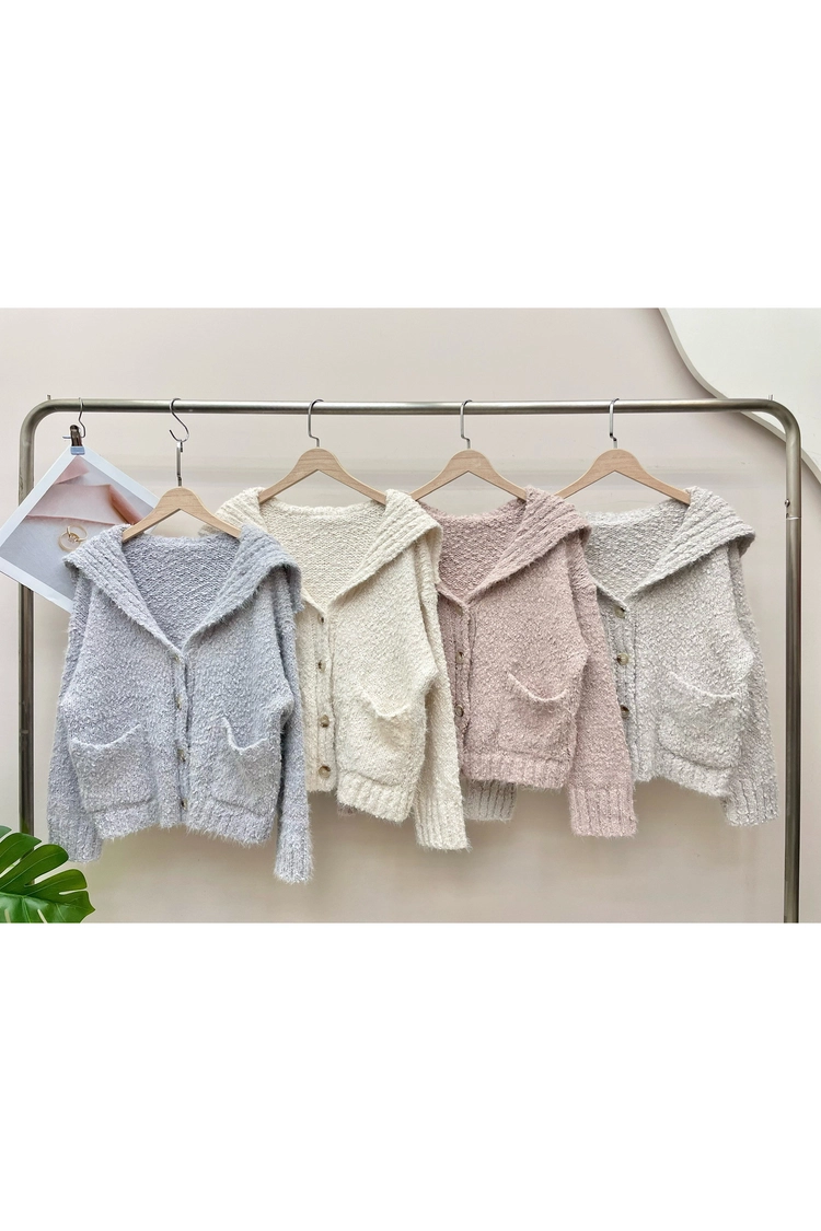 雙口袋混毛大翻領上衣-6089B