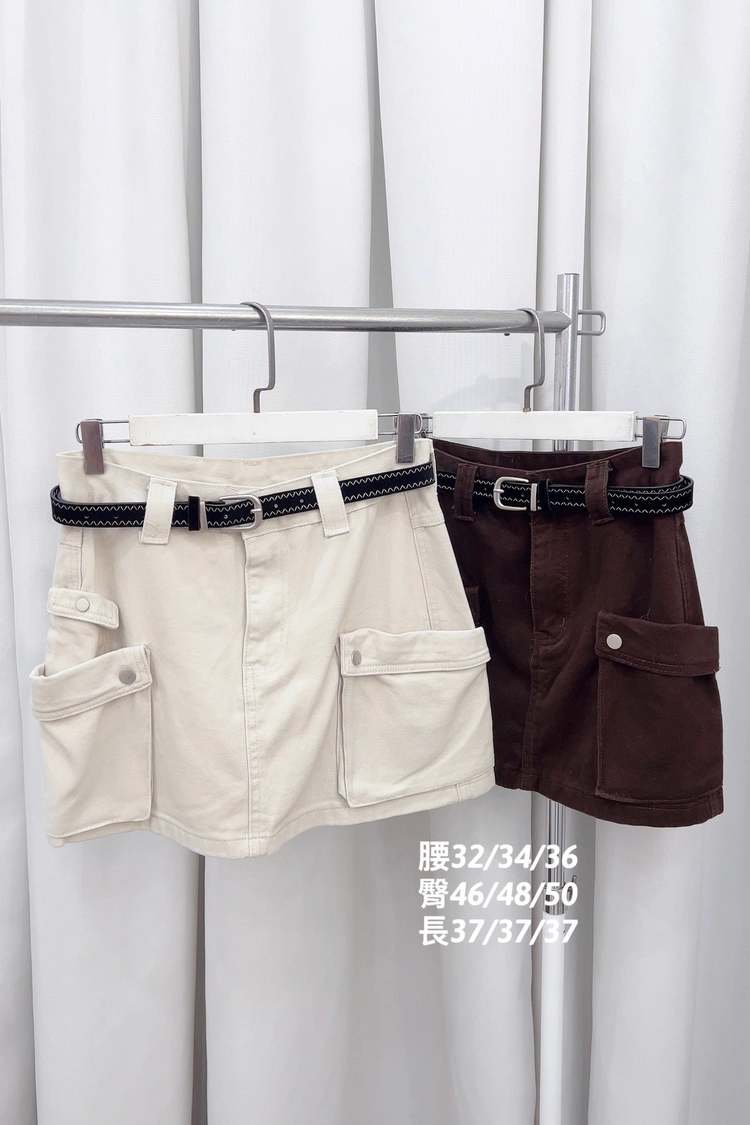 側口袋附腰帶工裝短裙S,M,L