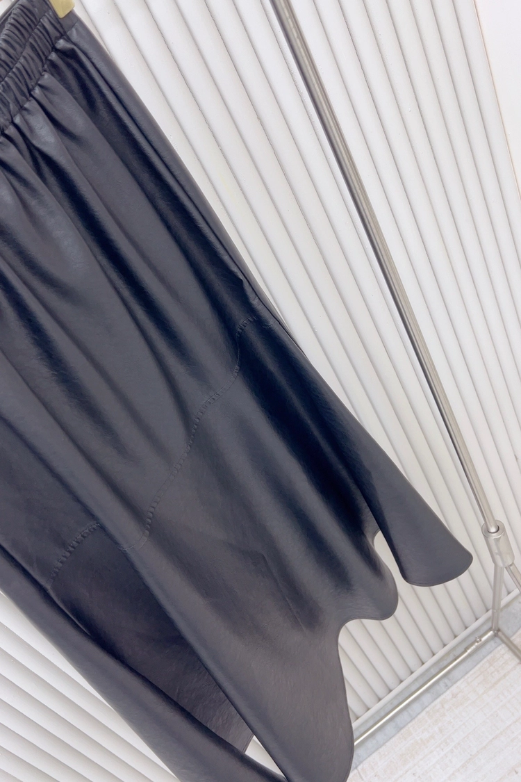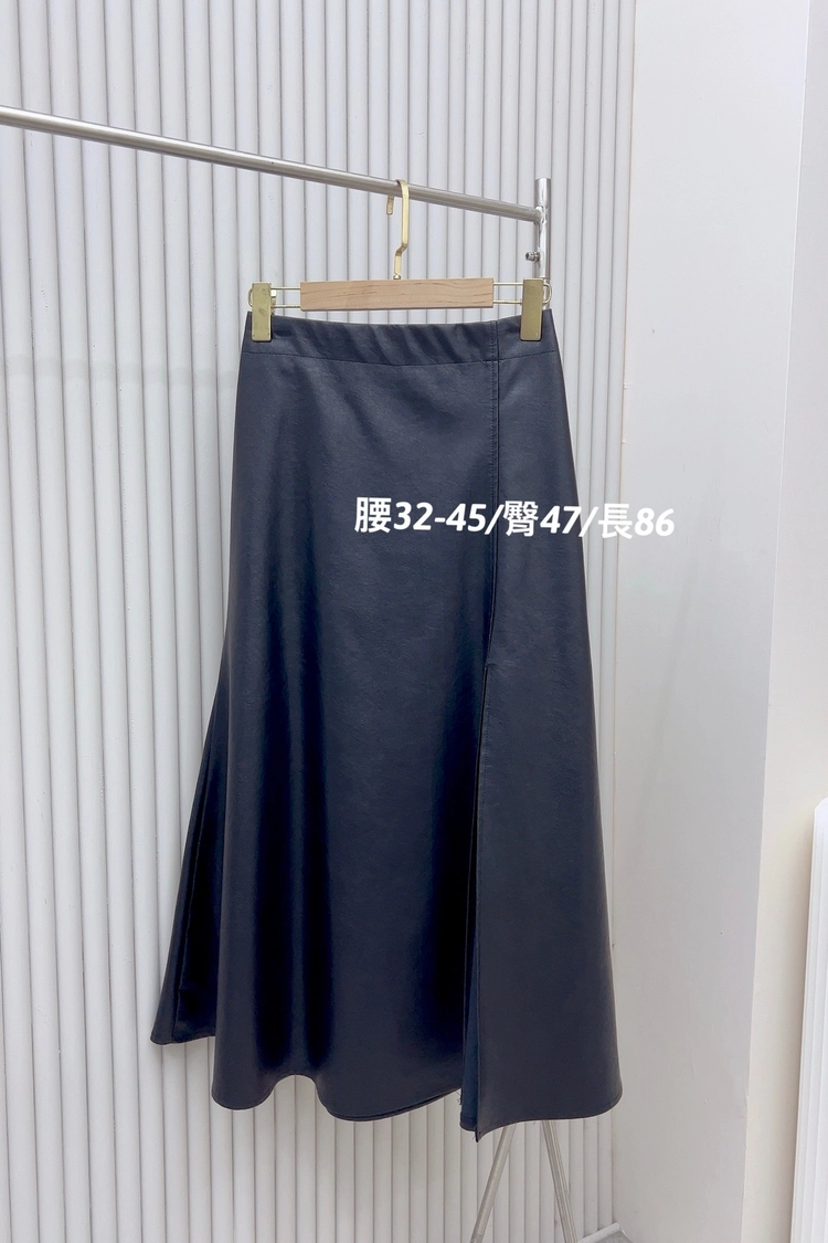 黑左開叉皮長裙-78927