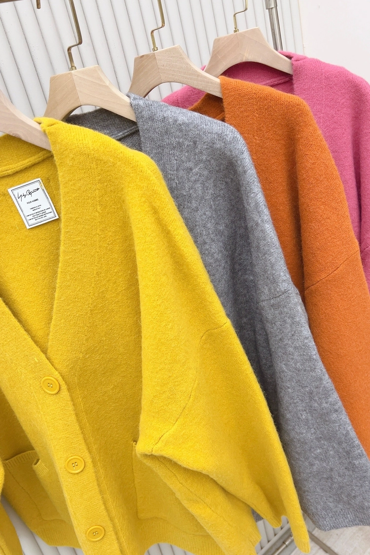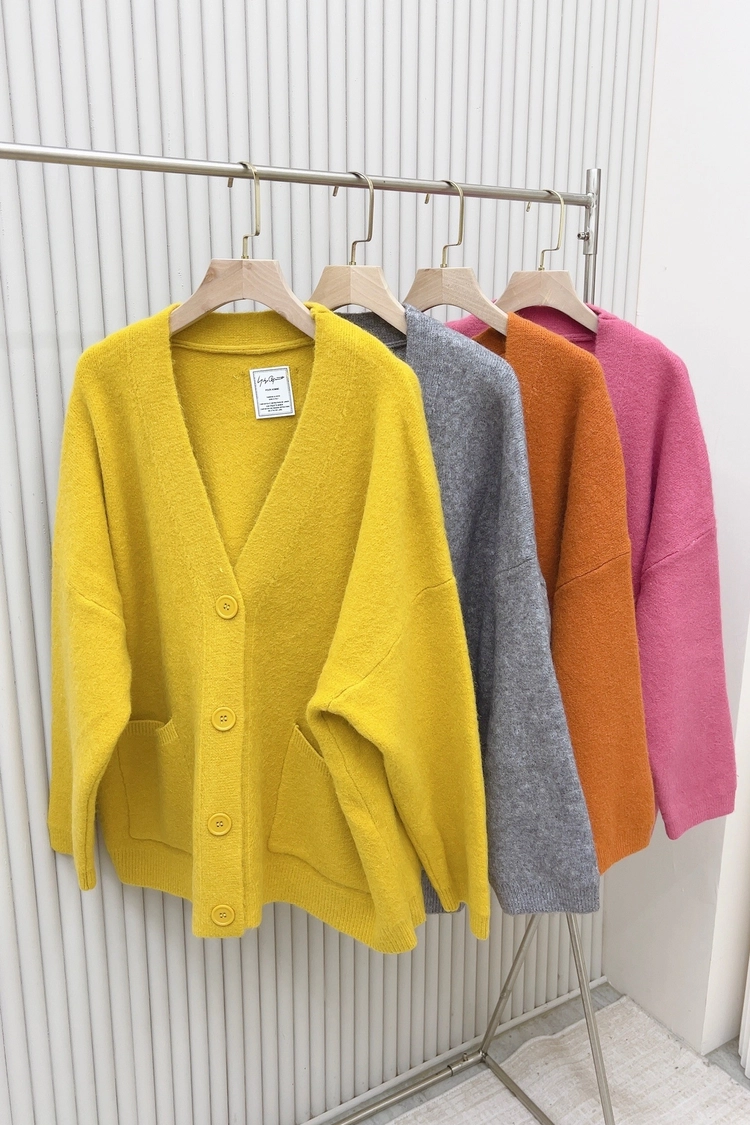 大圓釦大口袋V領厚磅織外套-9527
