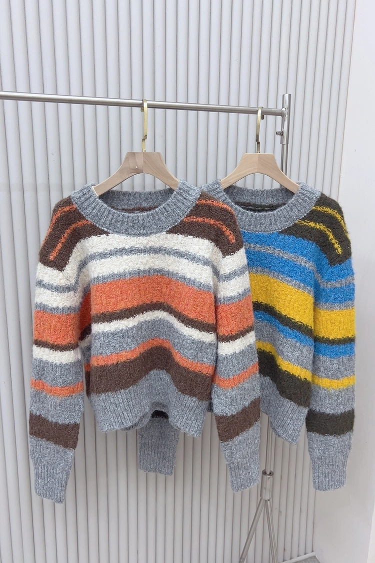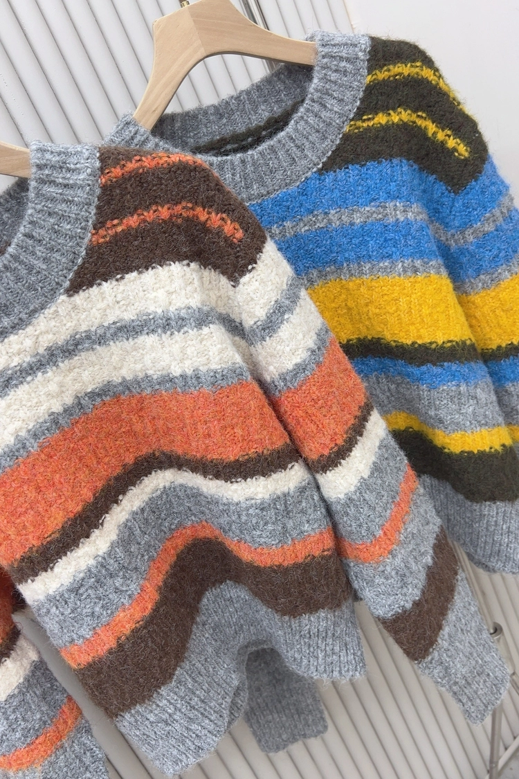 彩色寬條厚毛衣-8754