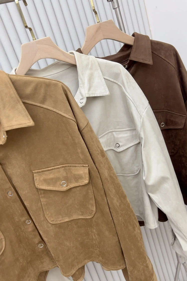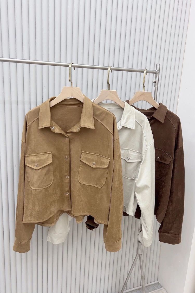 銀釦麂皮襯衫-303