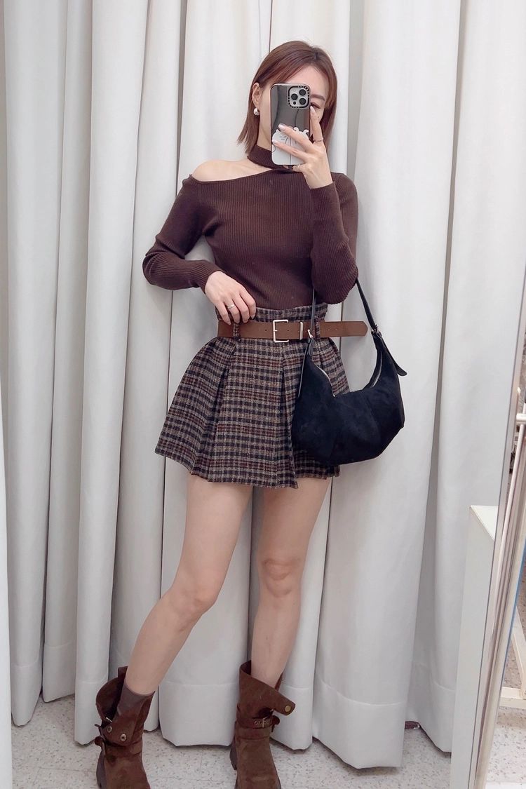 花苞格紋短裙