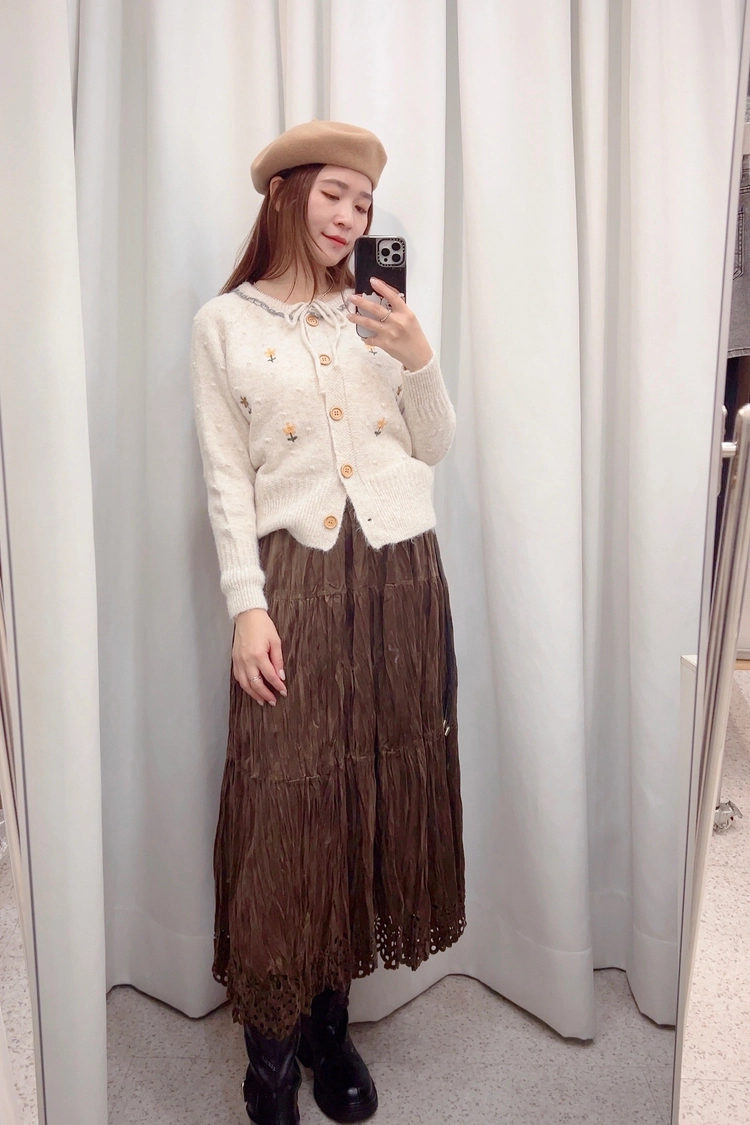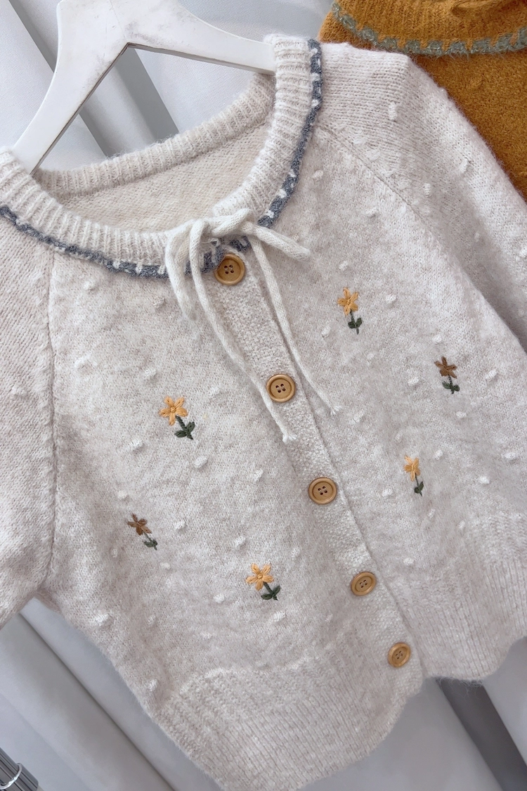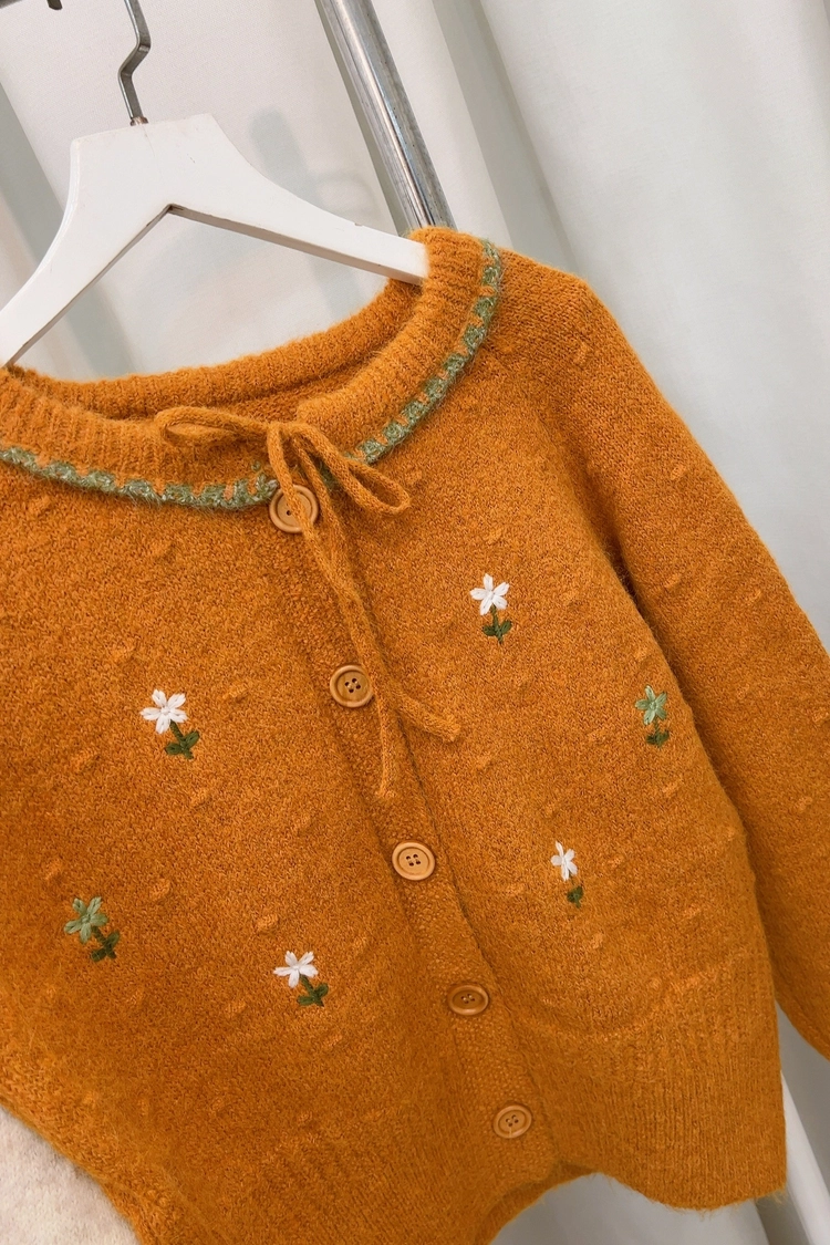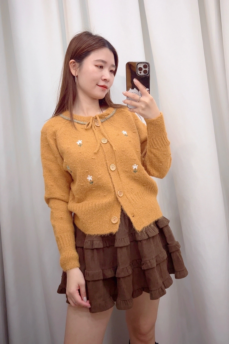 刺繡小花前綁針織衣