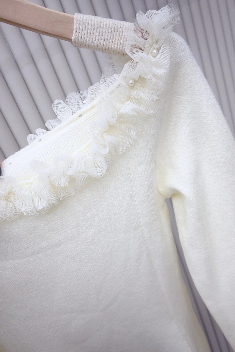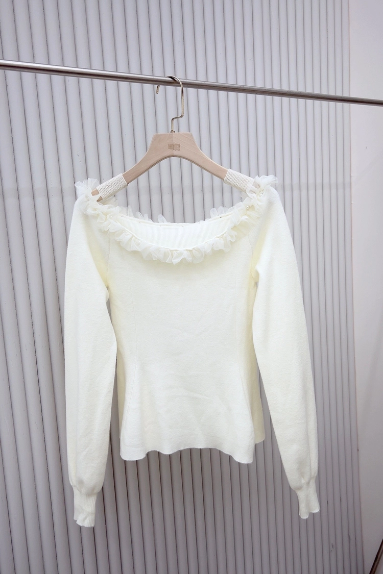 一字領接珍珠紗傘針織衣-5108