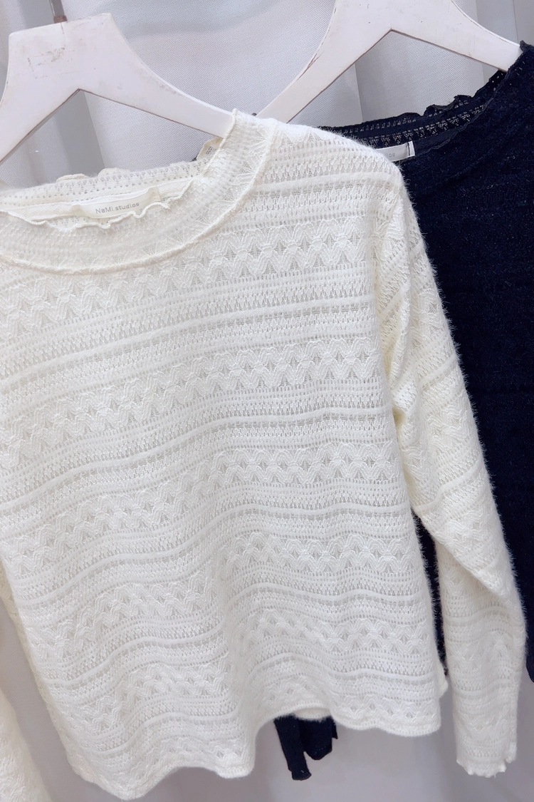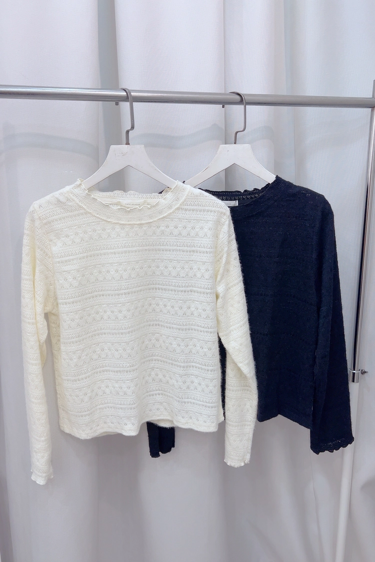 捲邊波紋毛毛蕾絲上衣