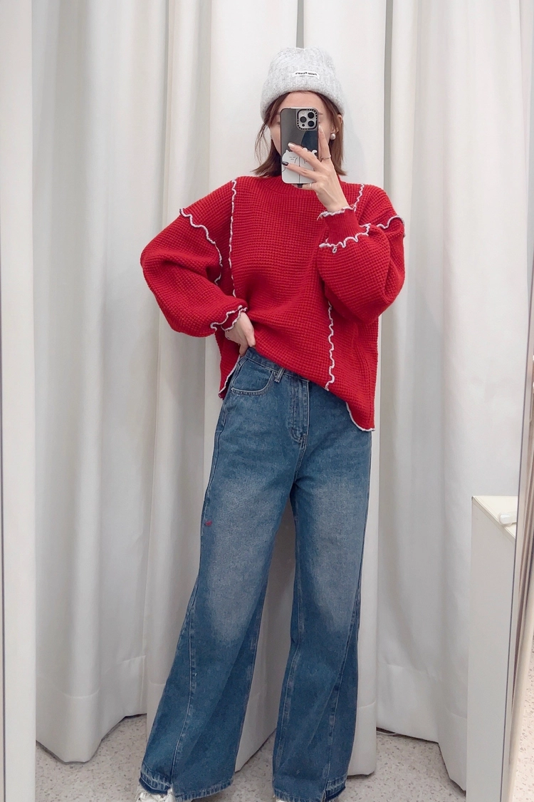 藍下小缺口牛仔寬褲SML