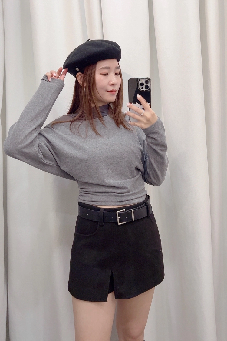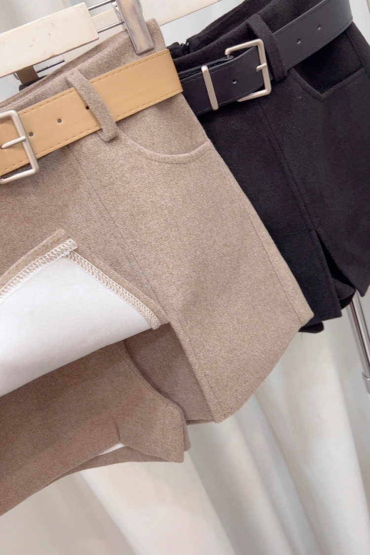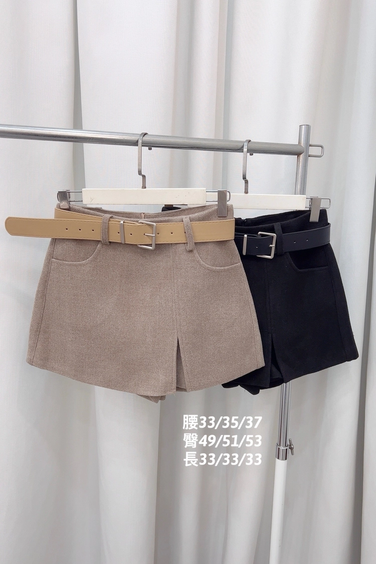 下擺小開衩毛呢短褲裙SML(低腰,偏小)