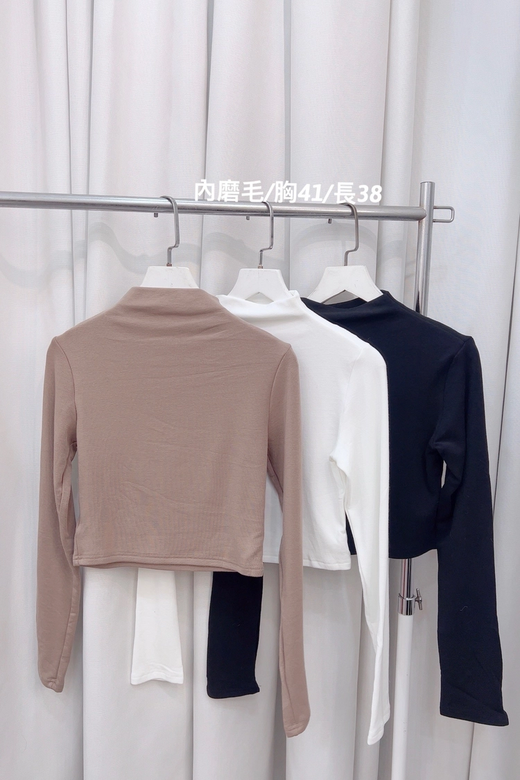 白,奶,黑內磨毛半領短版合身衣