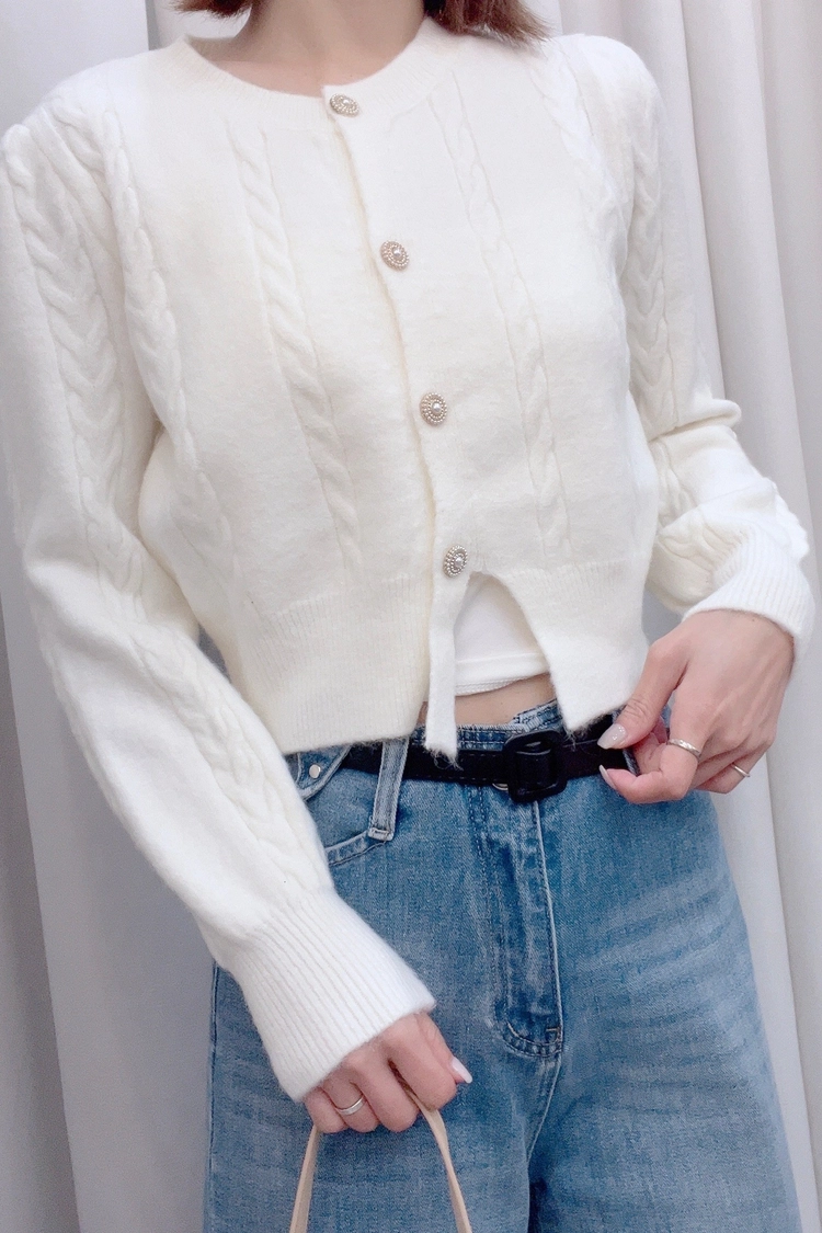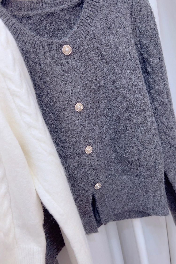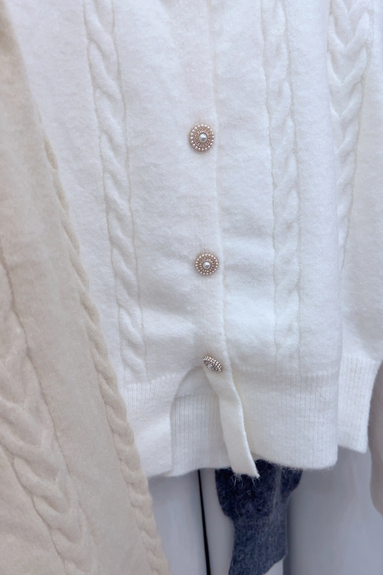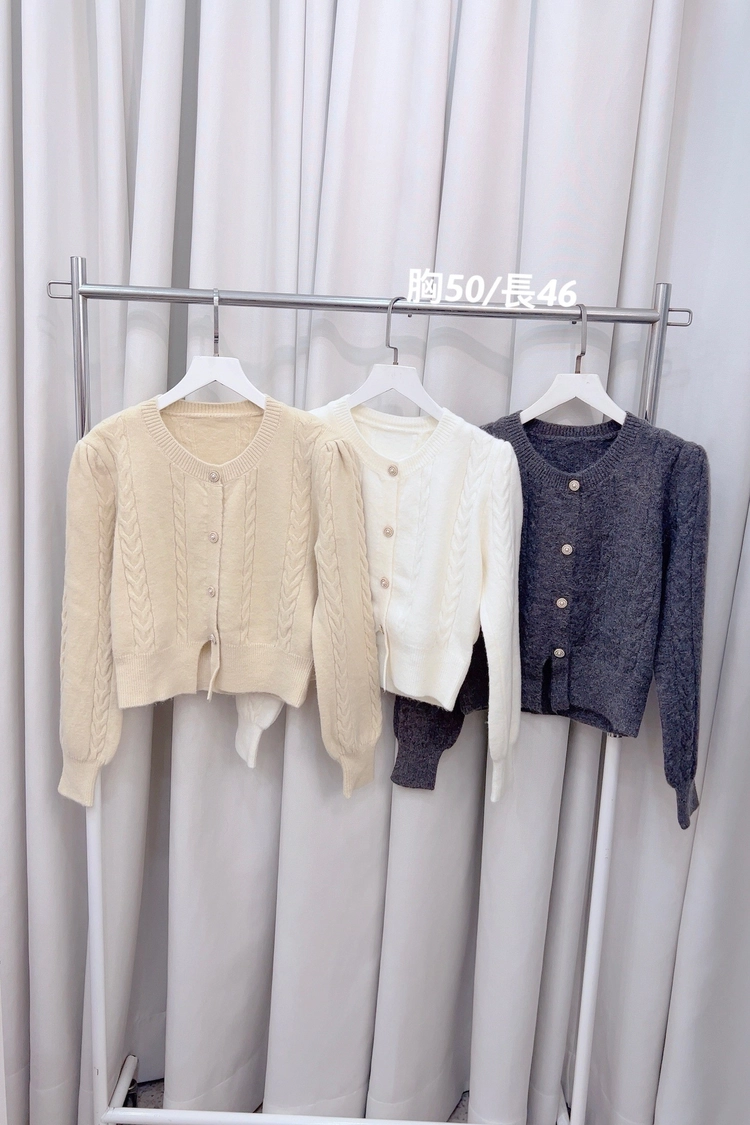 黃,米白,深灰麻花珍珠扣上衣