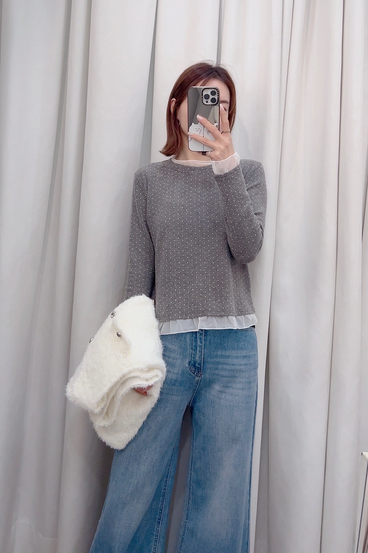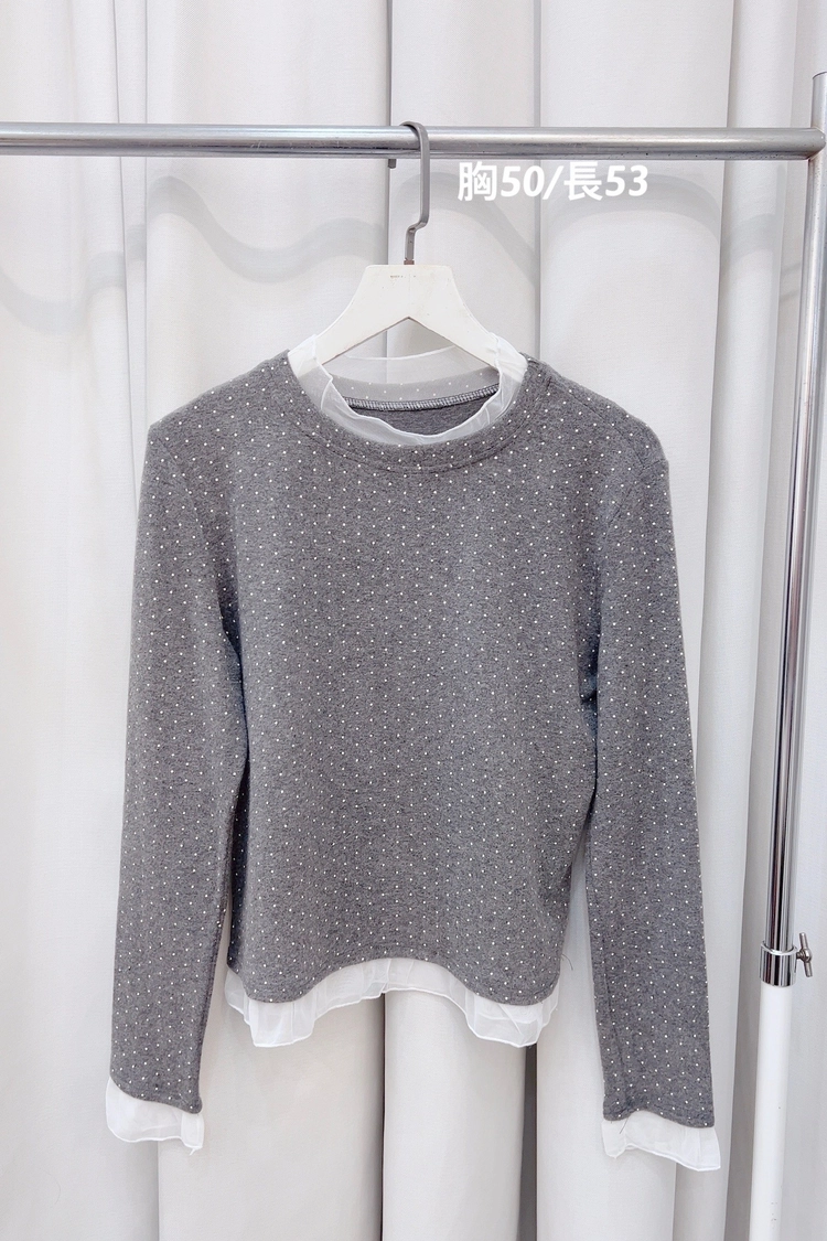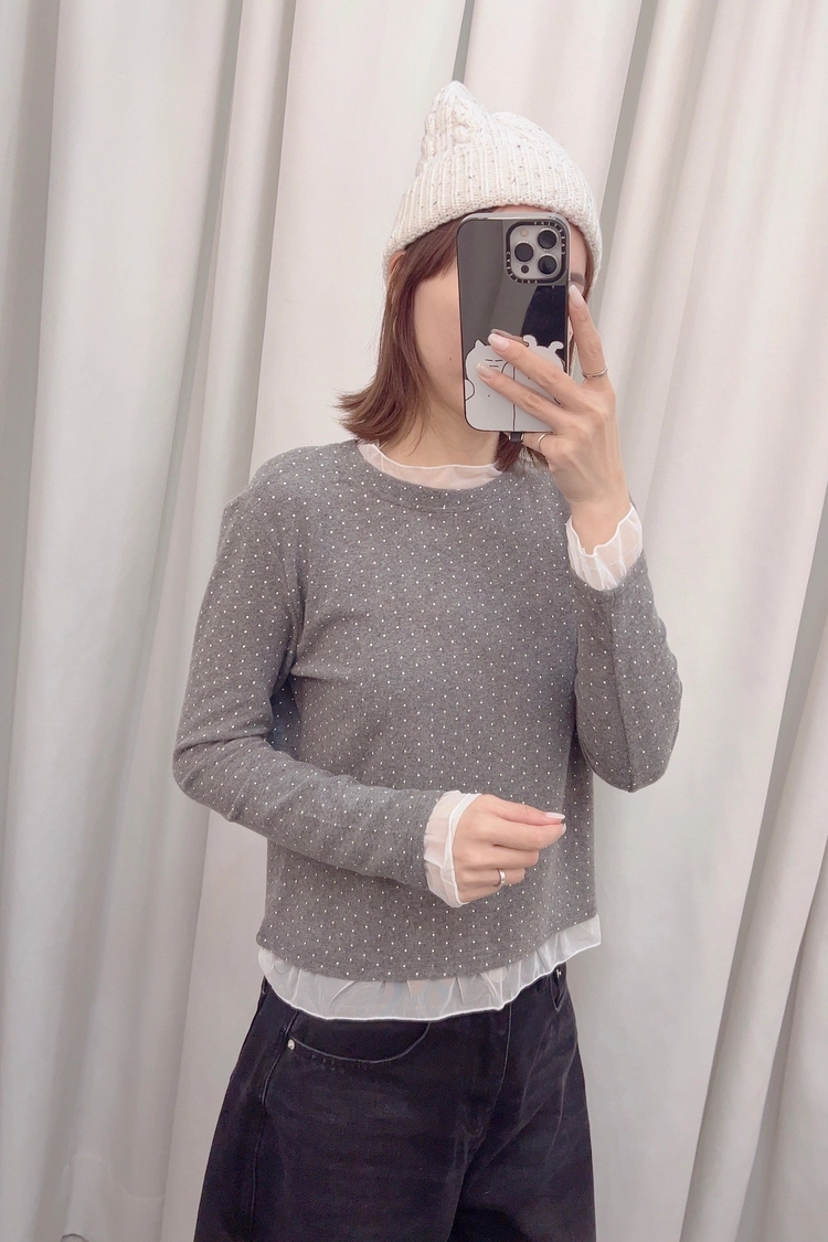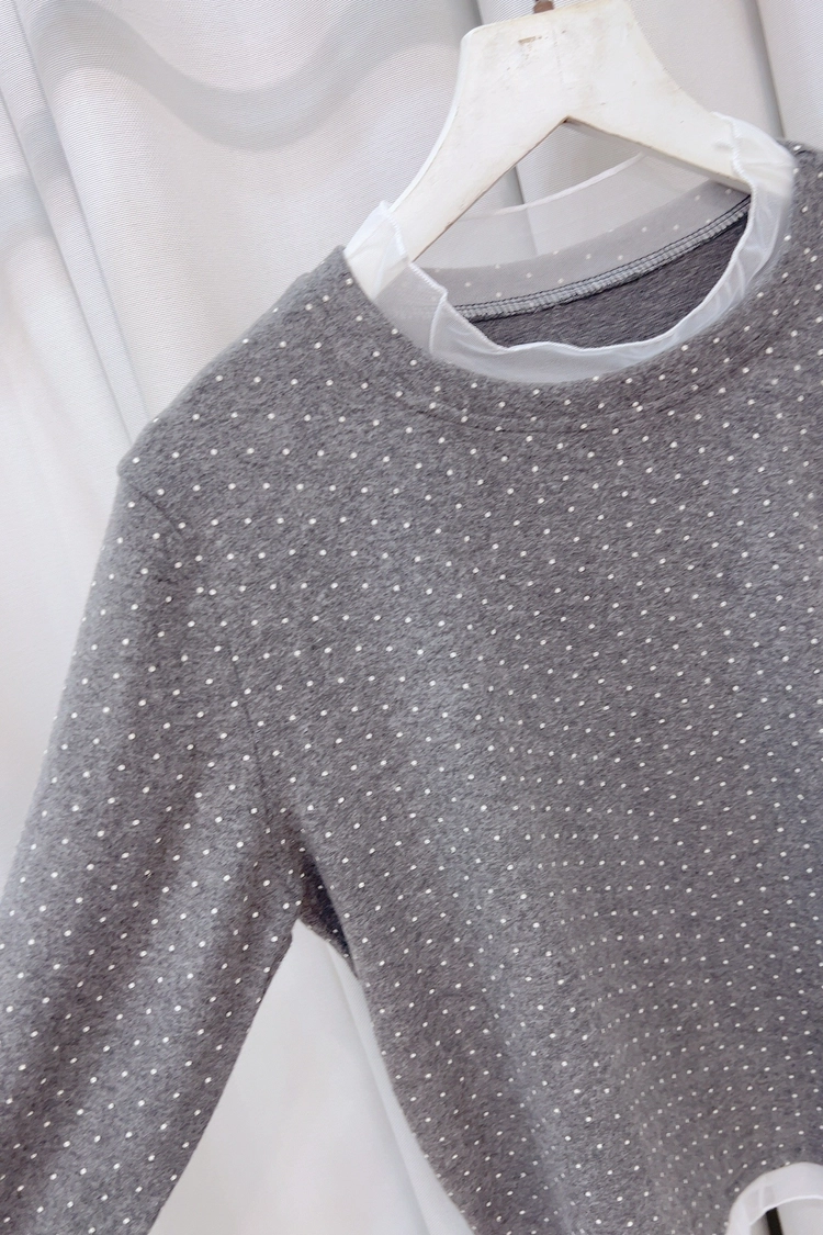 灰小點點接紗磨毛上衣