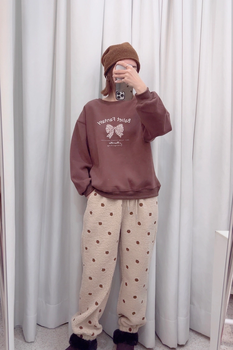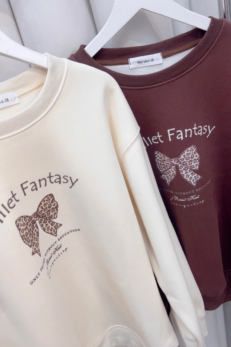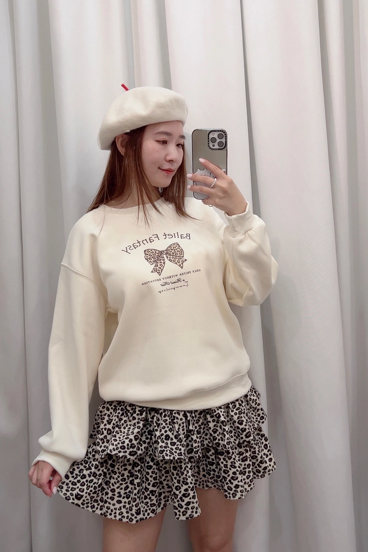 杏,咖蝴蝶結刷毛大學T