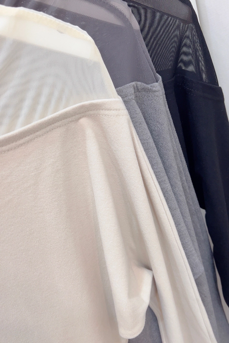黑,杏,灰斜接網紗造型上衣