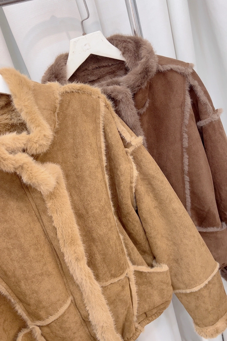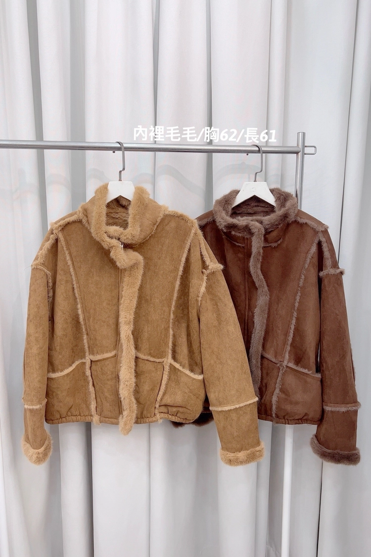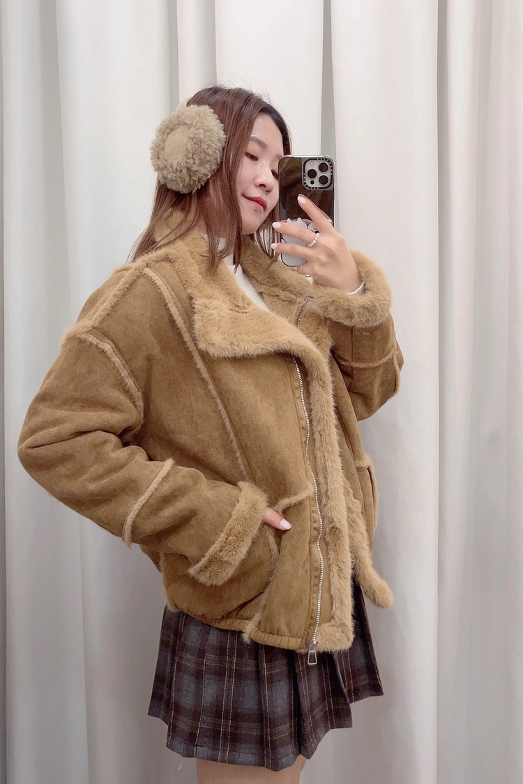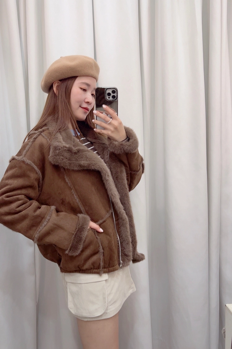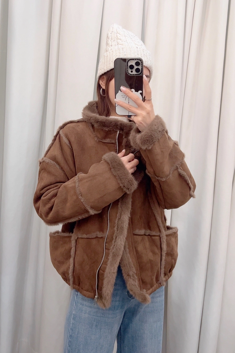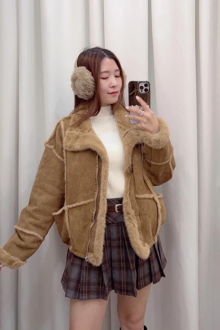 棕,咖外車毛邊內毛麂皮外套