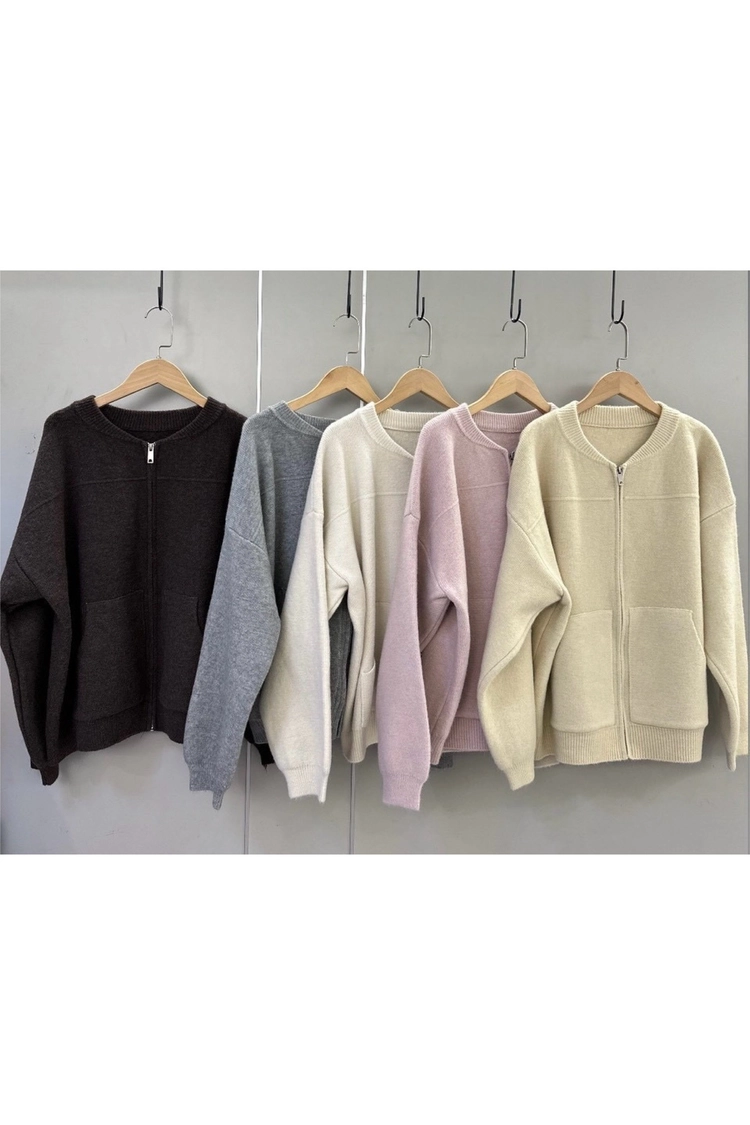 斜前口袋拉鍊針織外-5521
