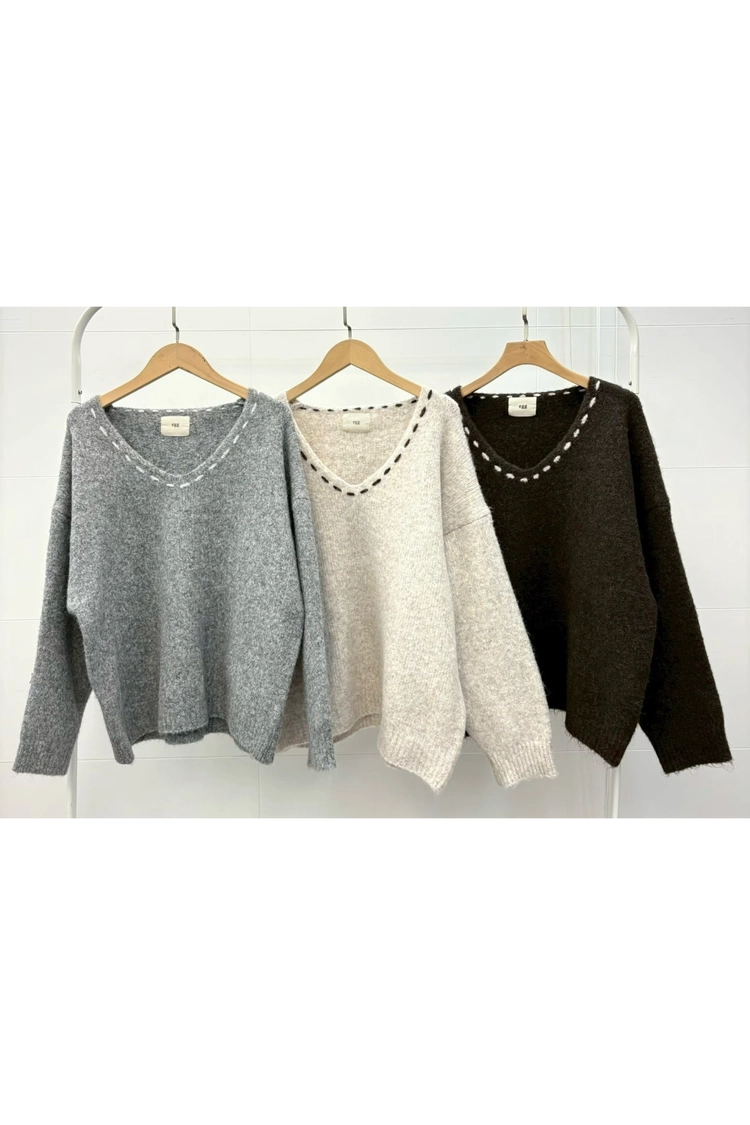 V領虛線毛衣-2481