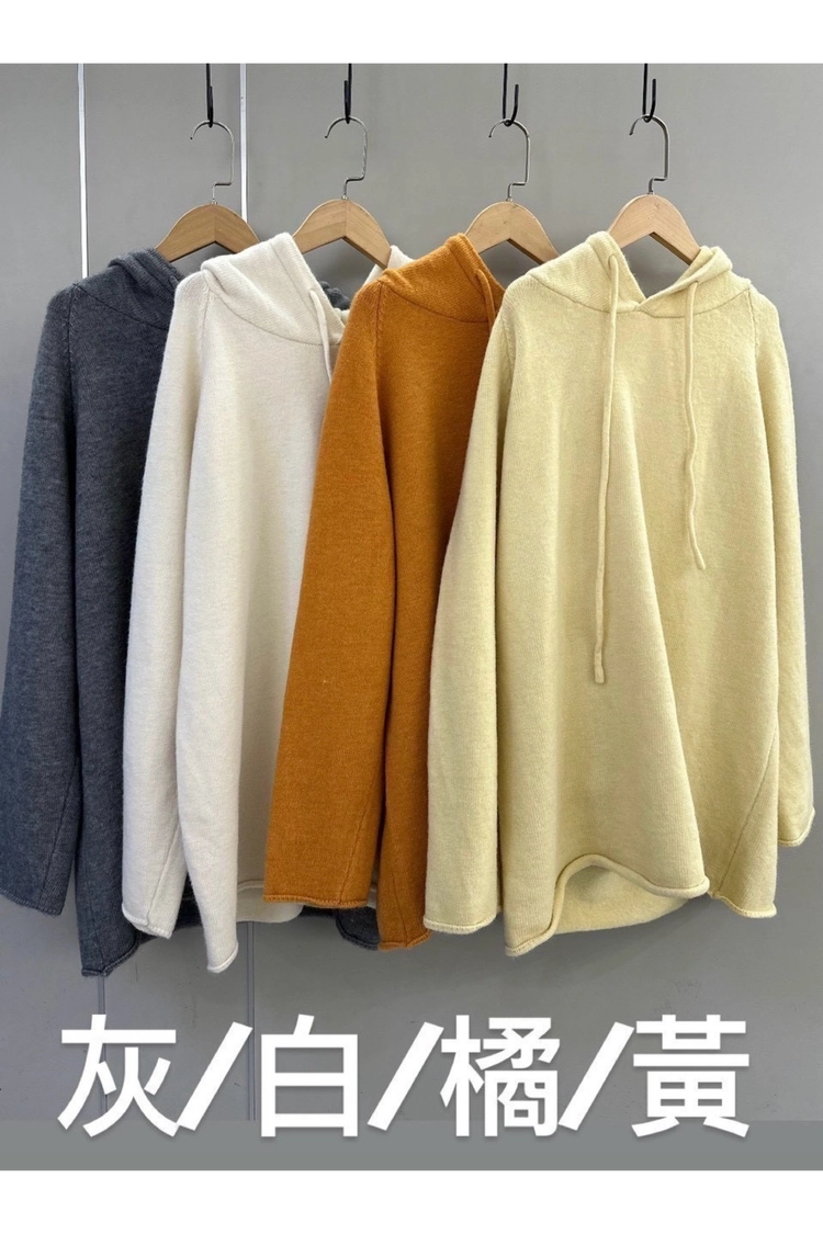 連帽抽繩長版針織衣-30121