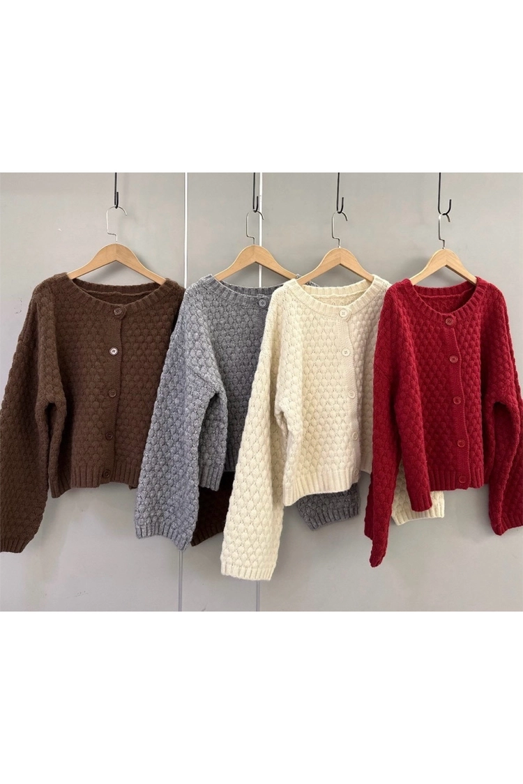 立體小菱格排扣針織外-4131