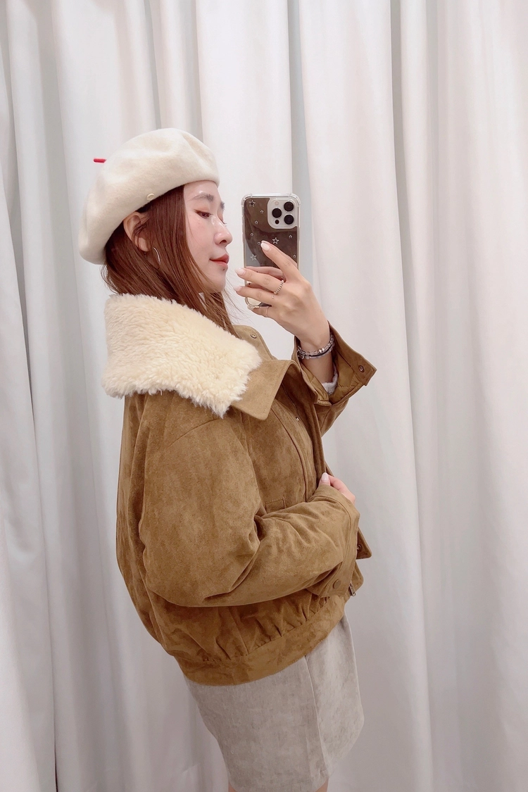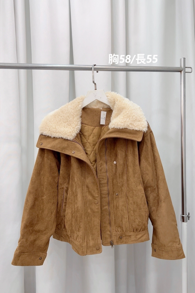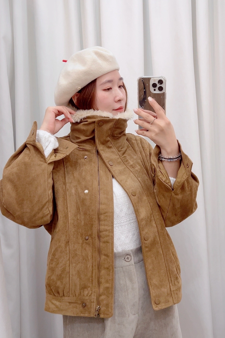 大立領翻領鋪棉麂皮外套