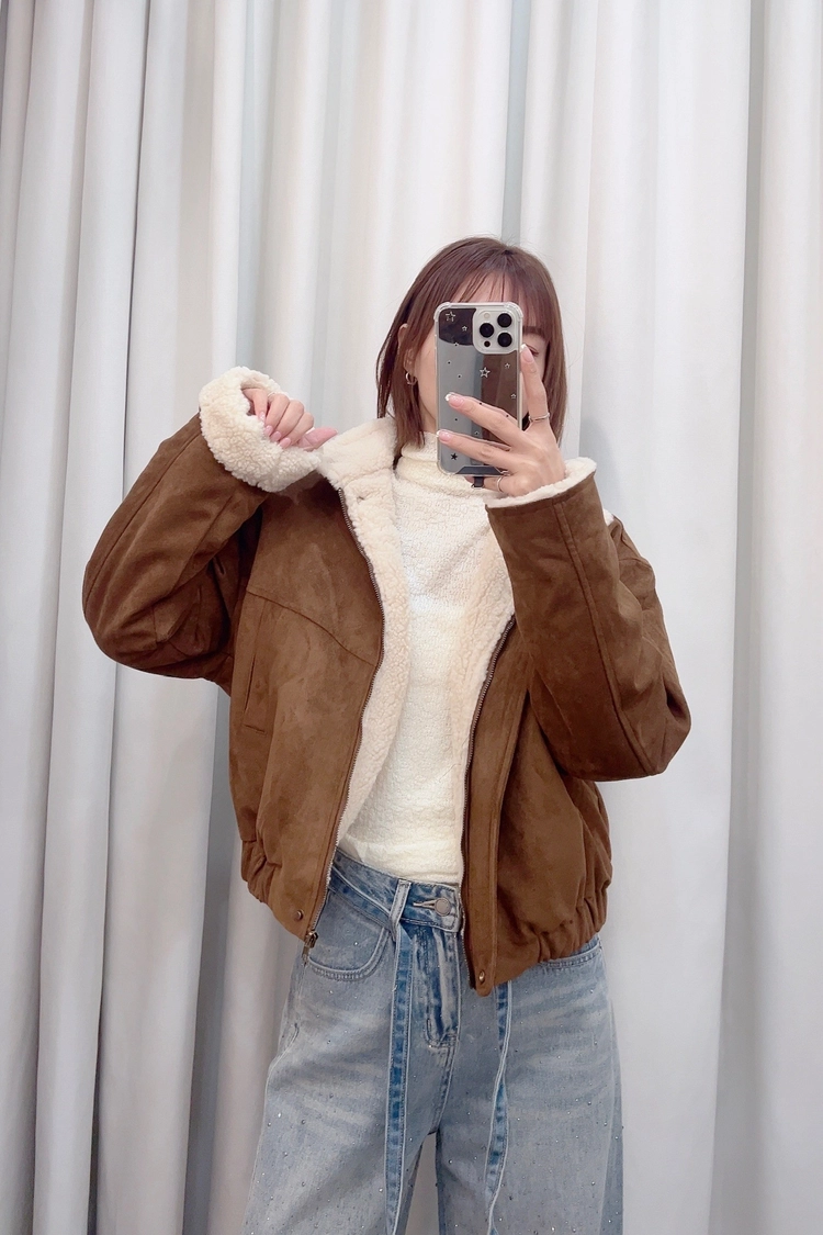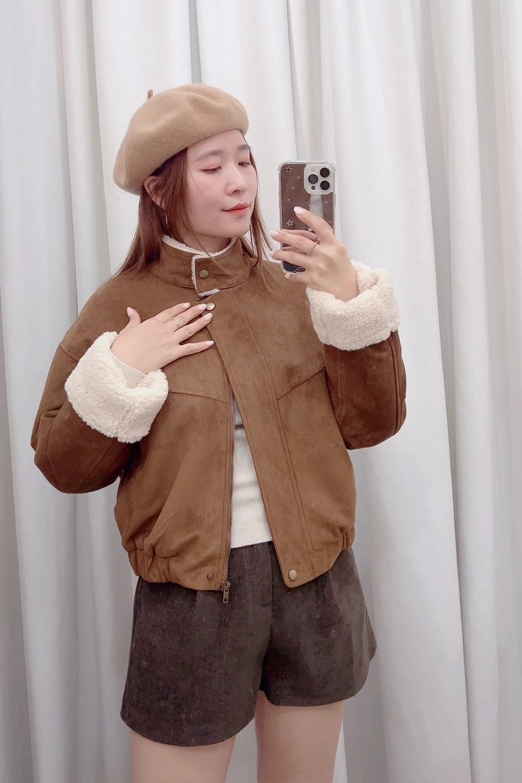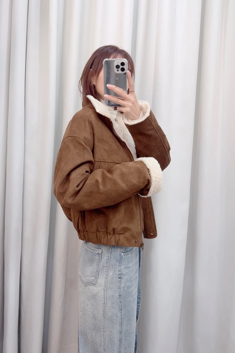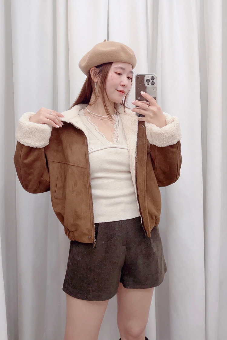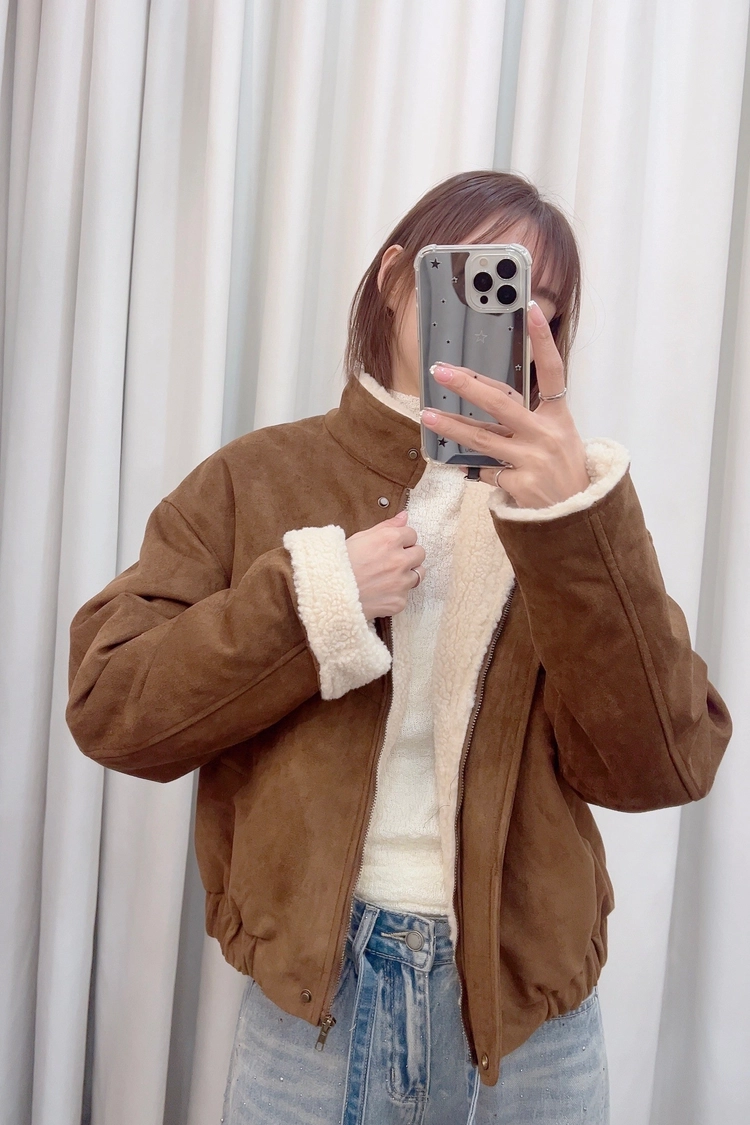 小立領內羊羔毛麂皮外