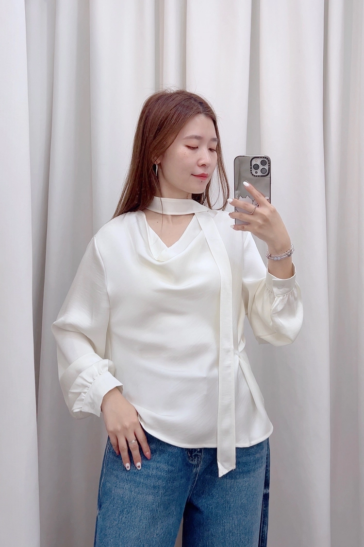 側扣繞頸垂領滑面上衣