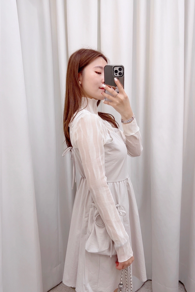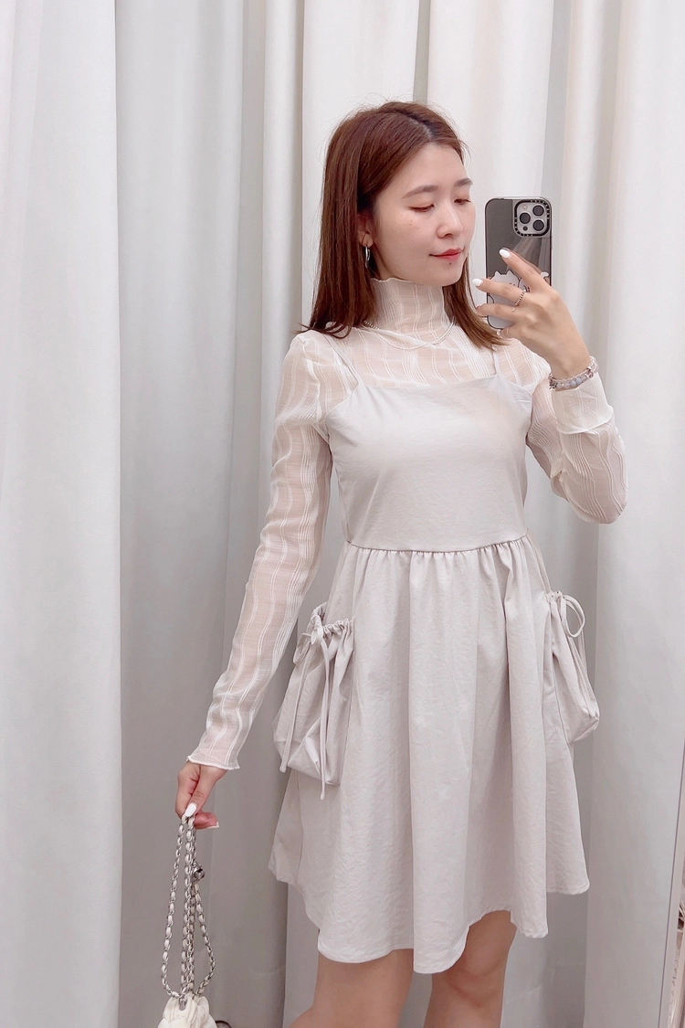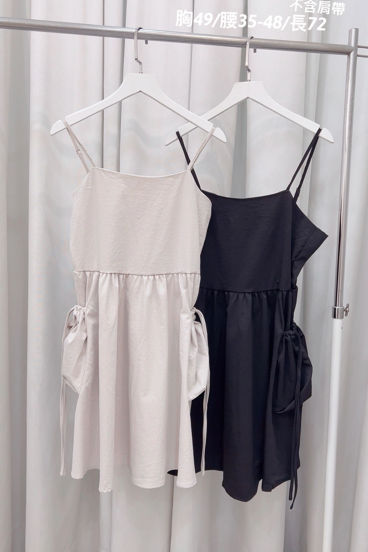 側大口袋細肩短洋