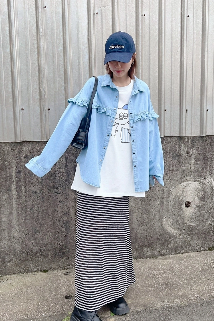 條紋魚尾長裙