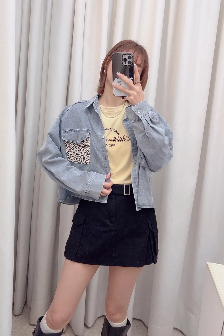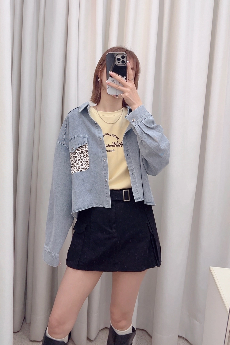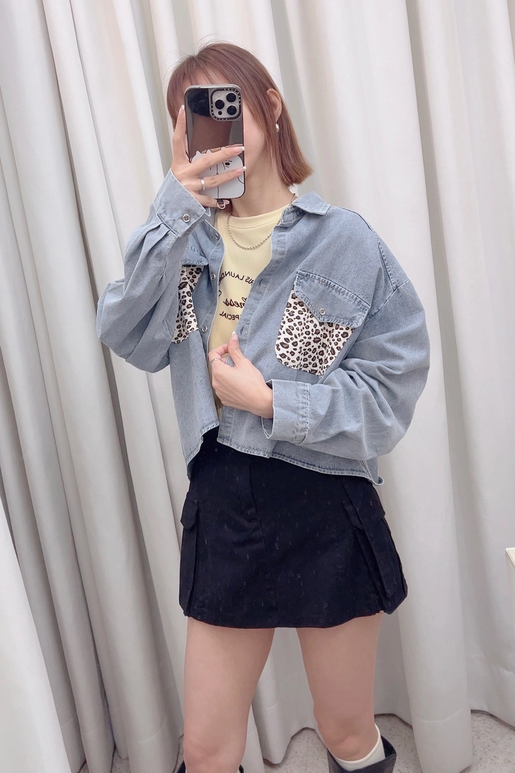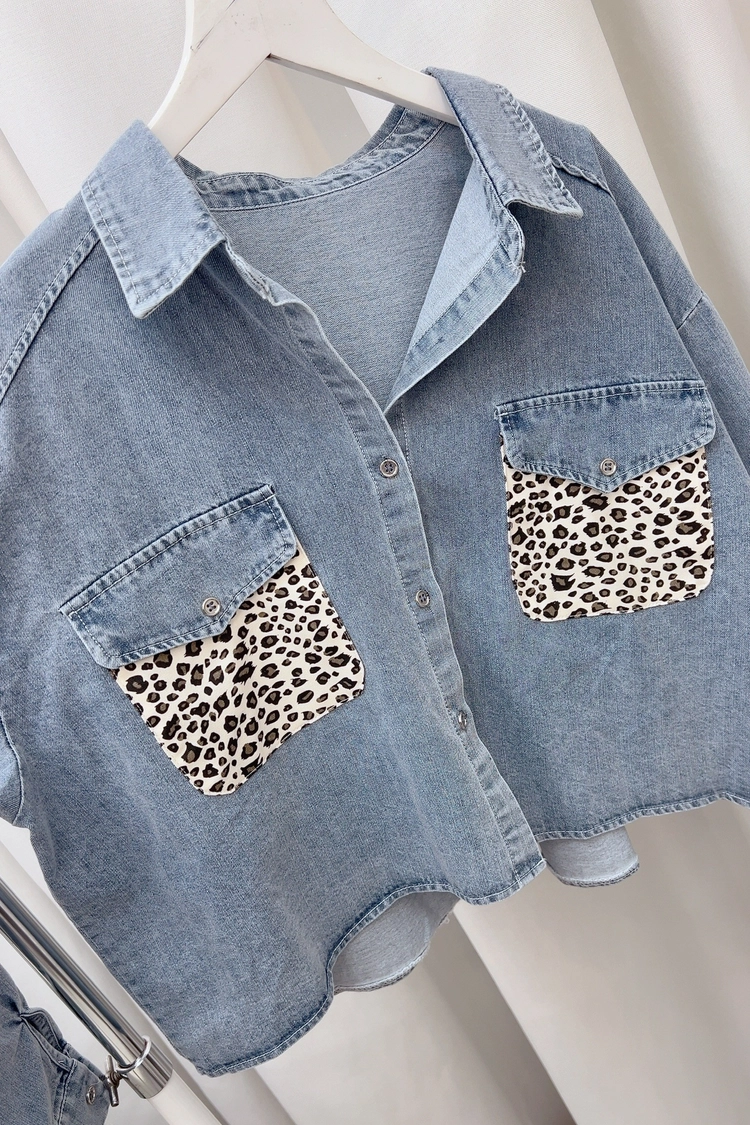 藍口袋豹紋牛仔薄襯衫