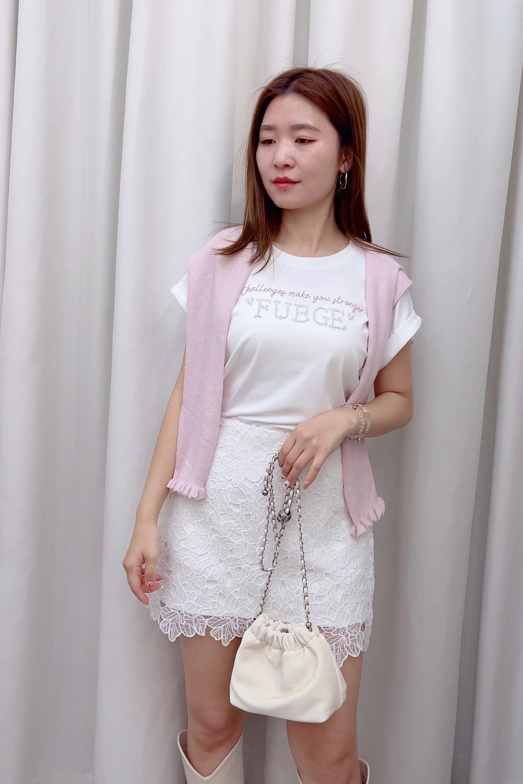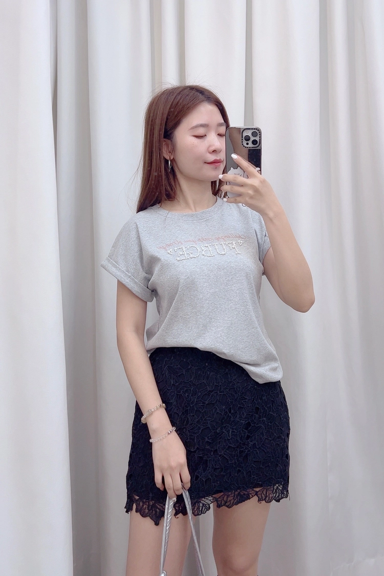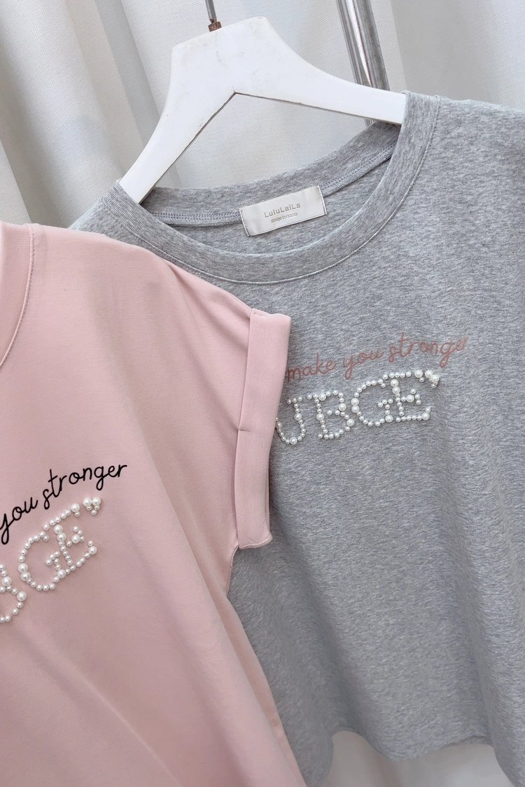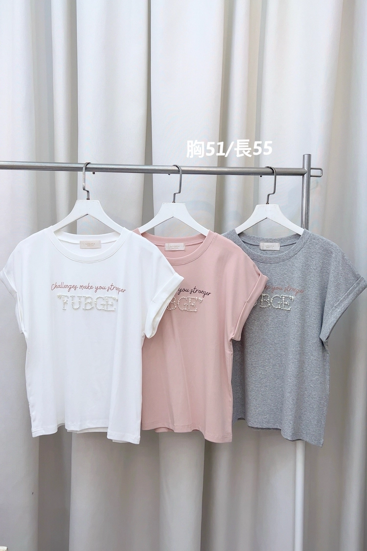 配色字母珍珠上衣