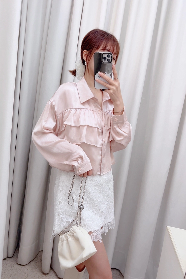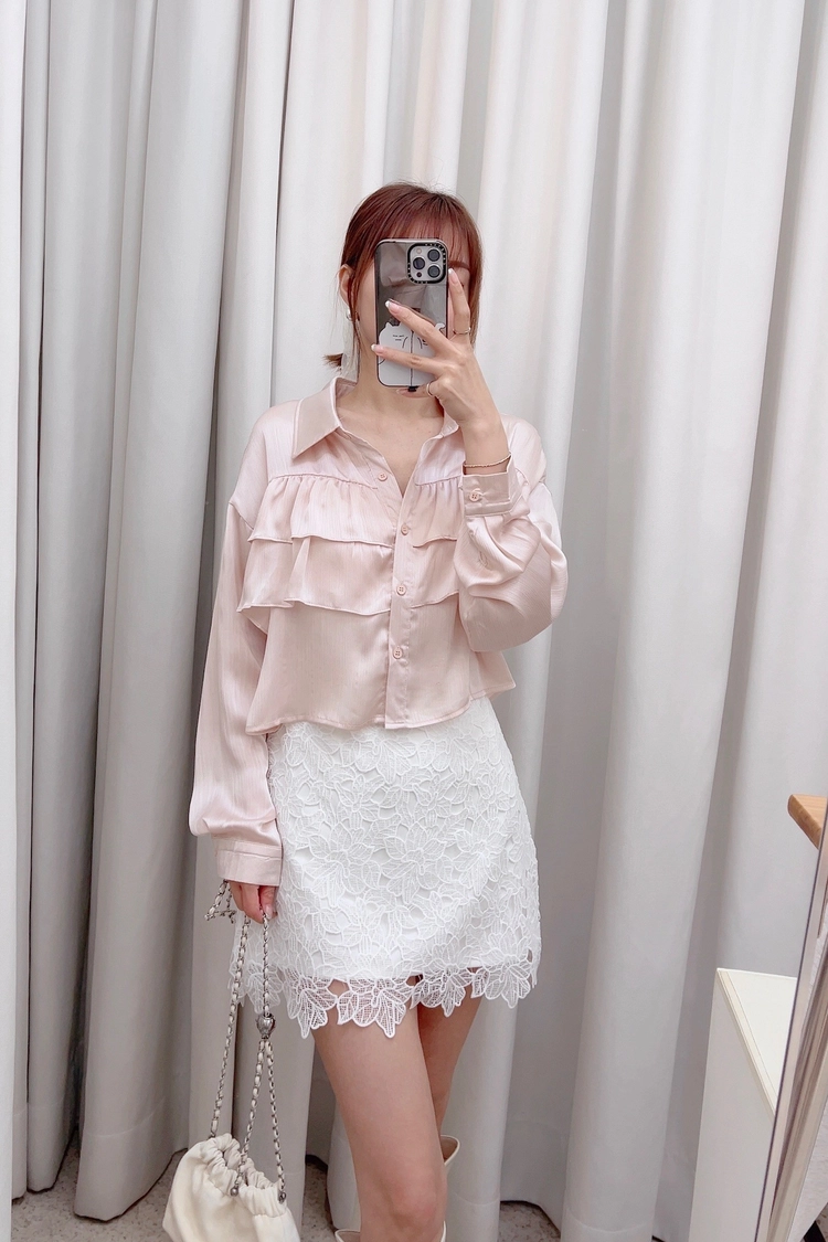 層層荷葉微短襯衫